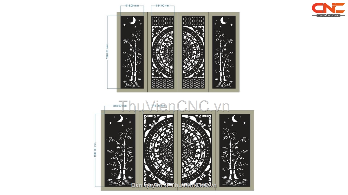 2 thiết kế cổng 4 cánh trống đồng trúc tiểu cảnh cắt cnc