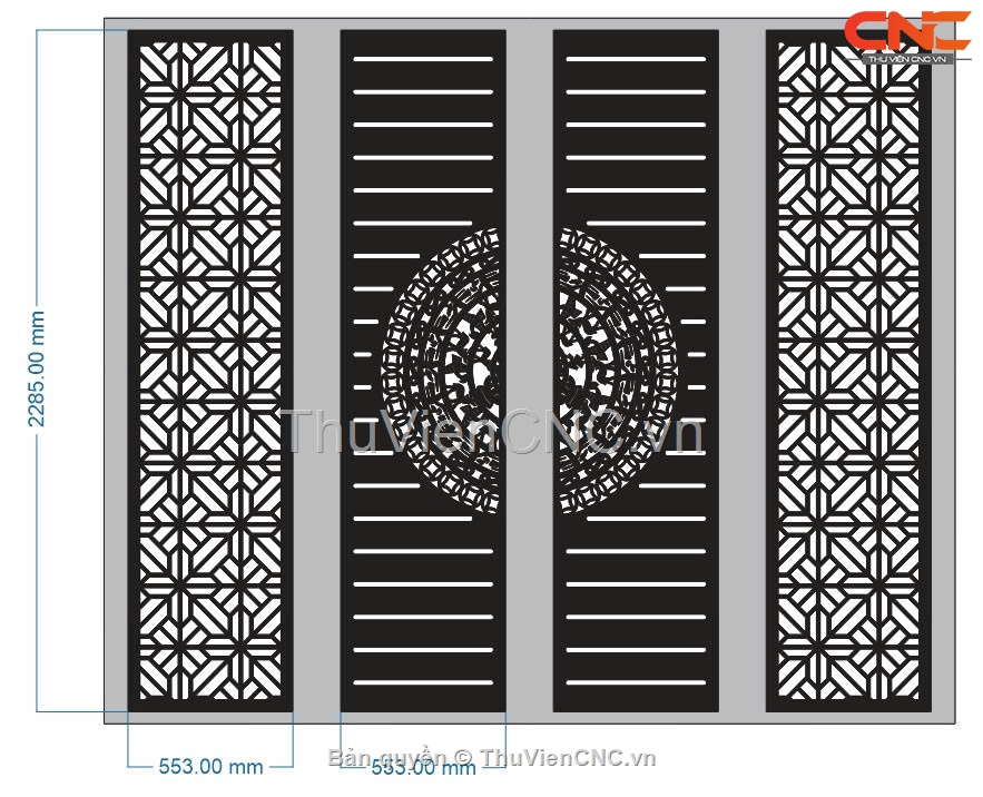 Bản vẽ thiết kế cổng 4 cánh cắt cnc