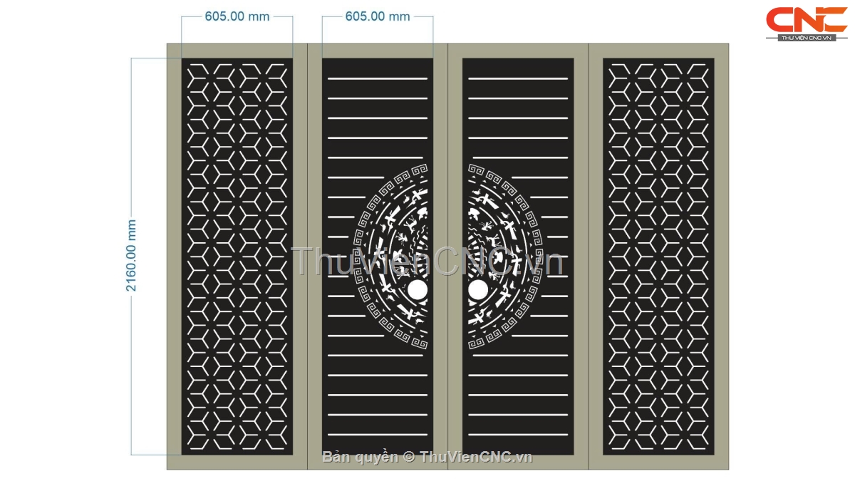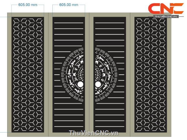 Bộ cổng 4 cánh trống đồng cnc dxf