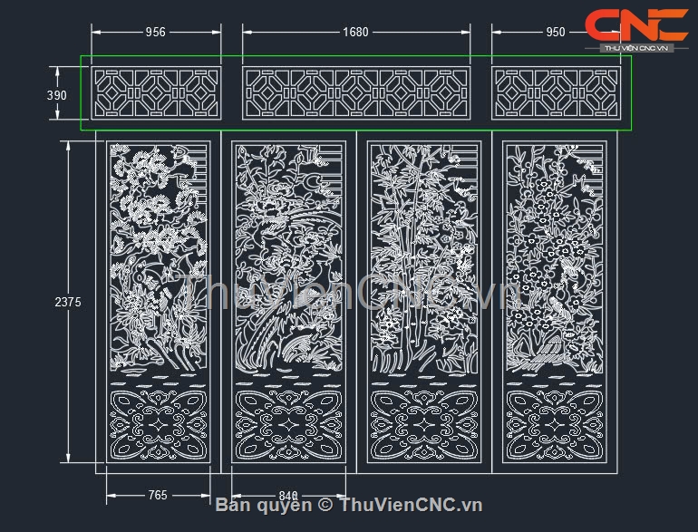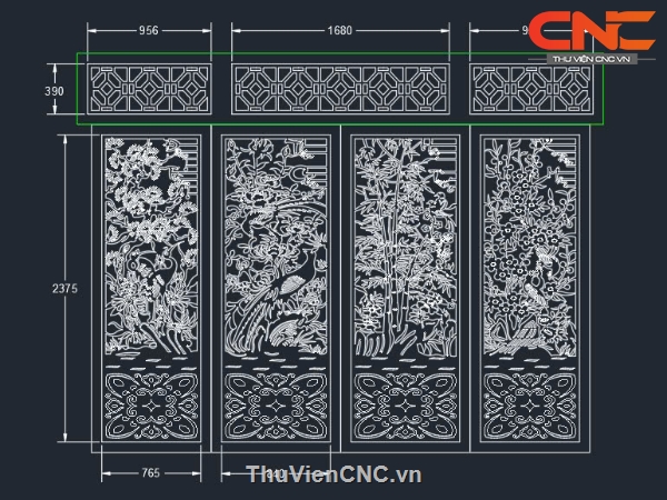 Cnc cổng tùng cúc trúc mai và ô thoáng