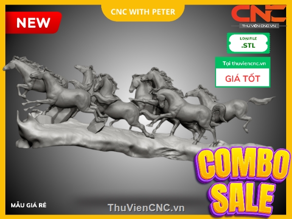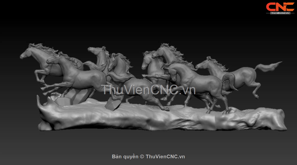Combo CNC bát mã STL đầy đủ 8 ngựa và đế, thiết kế mạnh mẽ, đồng bộ, phù hợp làm tranh và tượng phong thủy. File tương thích ArtCAM, Aspire, dễ chạy CNC.