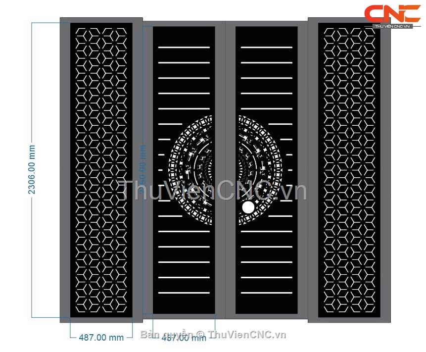 Cổng 4 cánh cnc cực đẹp trống đồng bông tuyết