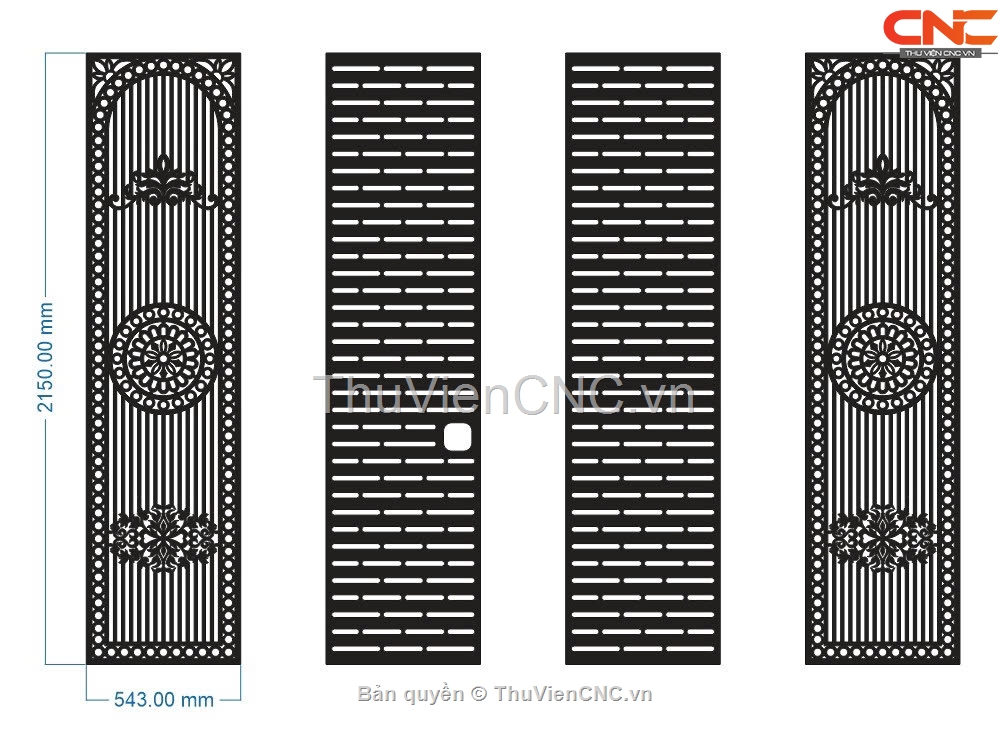 Cổng 4 cánh hoa văn vòm đẹp model dxf