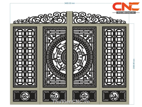 Model cnc cổng 4 cánh tài lộc