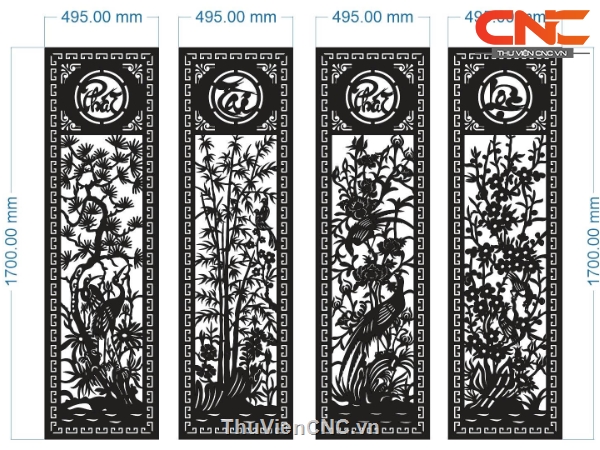 Cổng 4 cánh phát tài phát lộc tùng cúc trúc mai