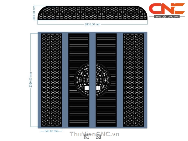 Cổng 4 cánh trống đồng bông tuyết cnc dxf đẹp
