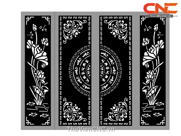 Cổng 4 cánh trống đồng hoa sen cnc