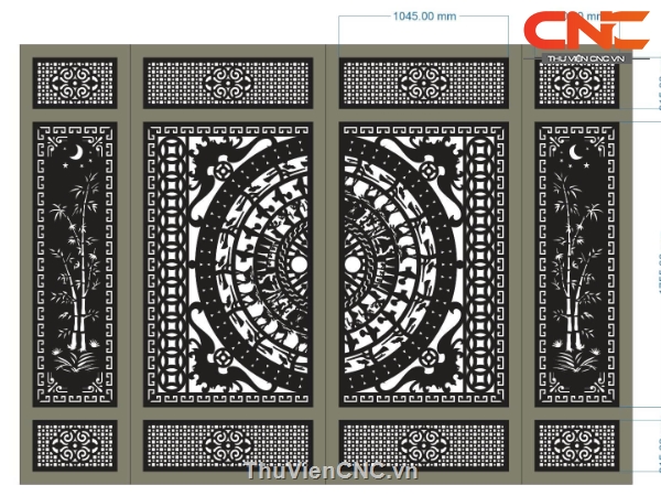 Cổng 4 cánh trống đồng trúc dơi cnc dxf