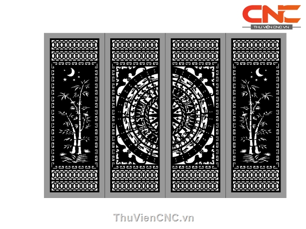 Cổng 4 cánh trúc trống đồng con dơi cnc