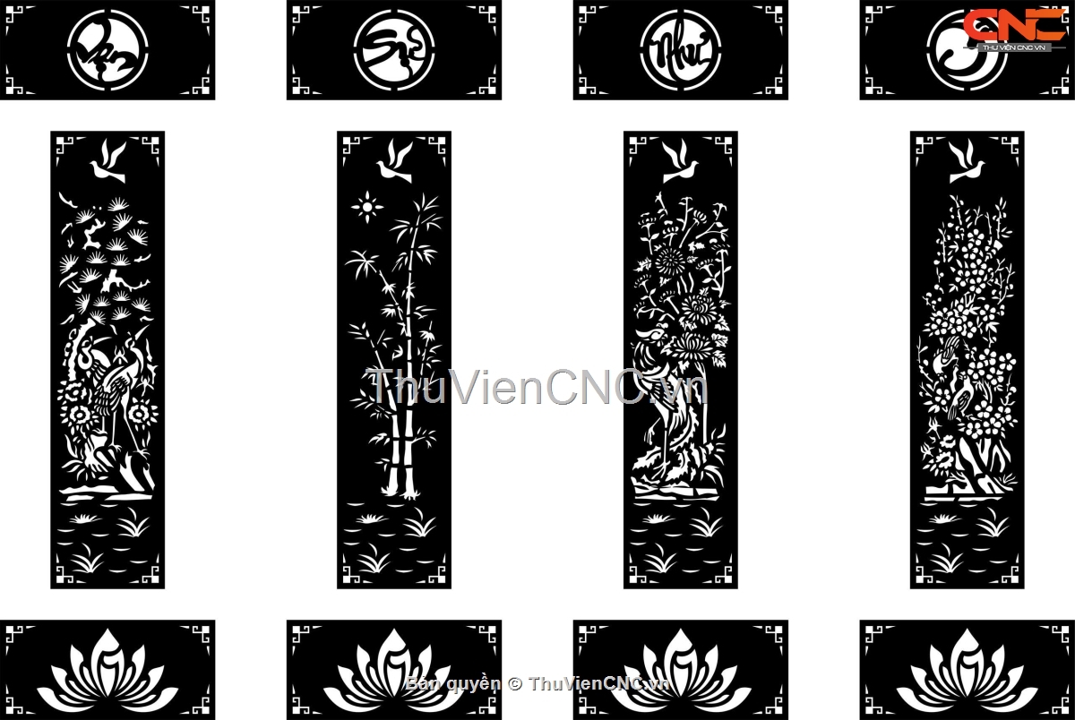 Cổng tứ quý vạn sự như ý hoa sen cnc
