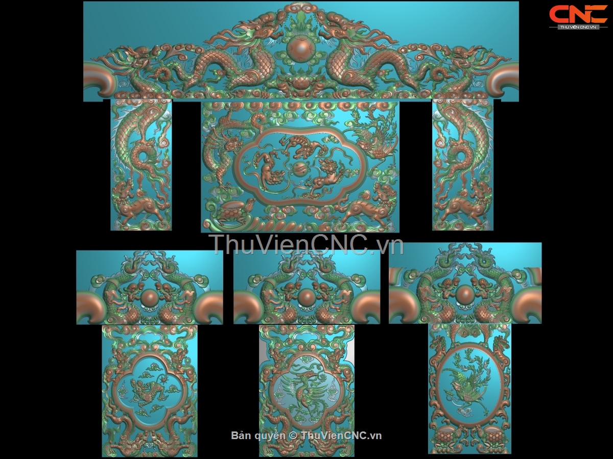 Download File thiết kế mẫu Bộ Bàn Ghế Chương Rồng Vách Tủa Tứ Linh Long Lân Quy Phụng cnc gỗ bản đẹp