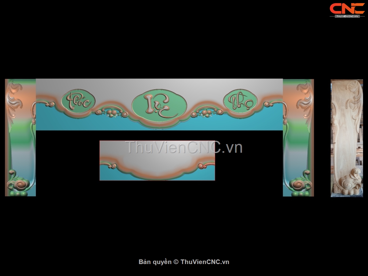 Download File thiết kế mẫu Bộ Sập Thờ Yếm Chữ Phúc Lộc Thọ Kèm Chân cnc gỗ bản đẹp