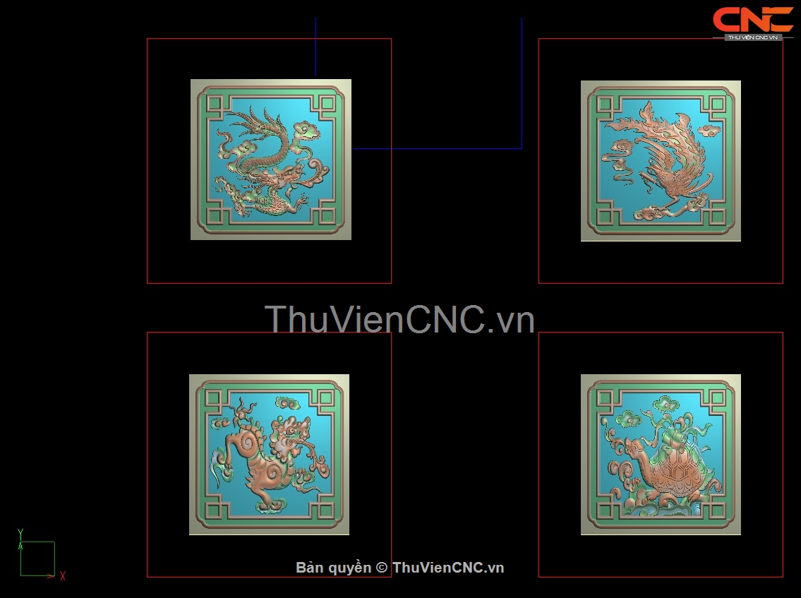 Download File thiết kế mẫu Trám Tủ Thờ Tứ Linh Long Lân Quy Phụng cnc gỗ bản đẹp