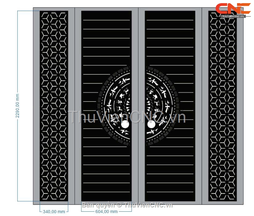 Download model cổng 2 cánh trống đồng bông tuyết dxf cnc
