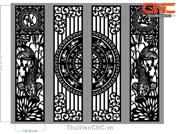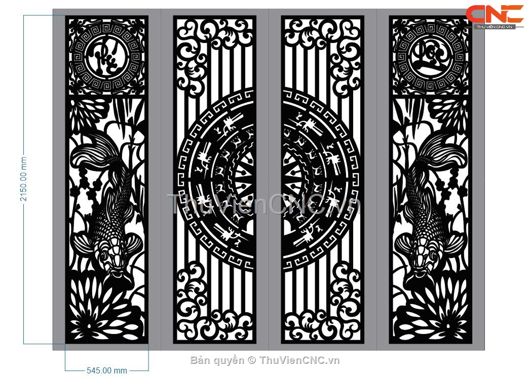 Download model cổng 4 cánh trống đồng cá chép tài lộc cnc