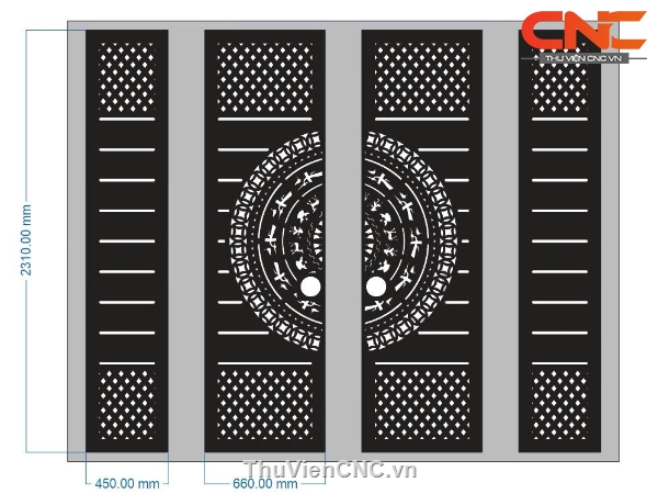 Download model cổng 4 cánh trống đồng nan chéo cnc