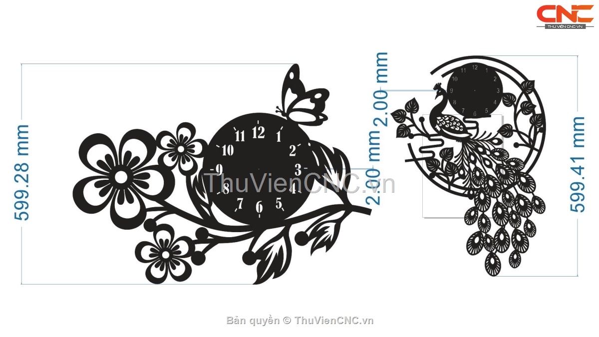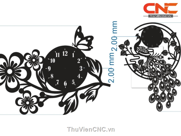 File 2 thiết kế đồng hồ hoa và chim công cnc