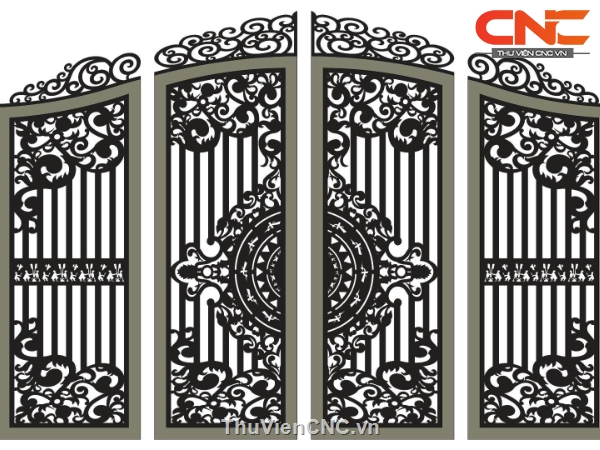 File bản vẽ cnc cổng 4 cánh lá tây
