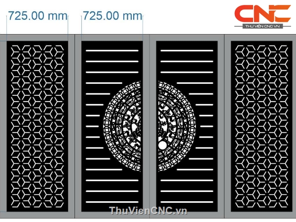 File cad thiết kế cnc cổng 4 cánh trống đồng bông tuyết