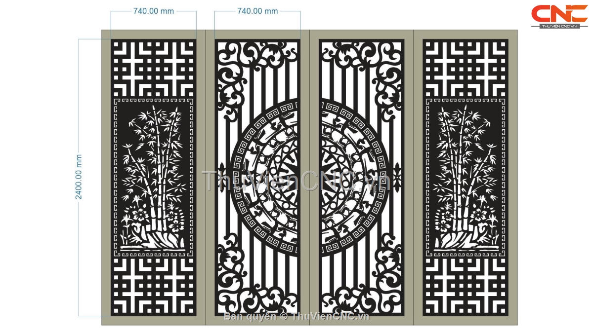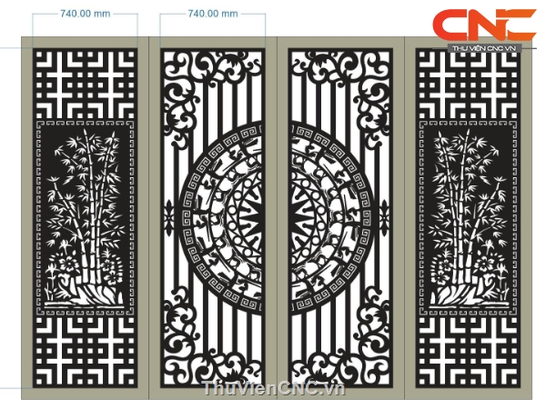 Mẫu cnc 4 cánh cổng trúc, trống đồng CNC được thiết kế trên cad với chất lượng tốt nhất.
