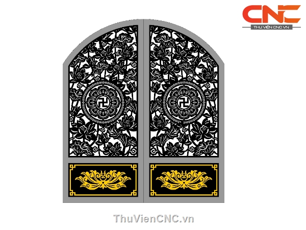 File cnc cổng 2 cánh hoa sen chữ vạn dxf