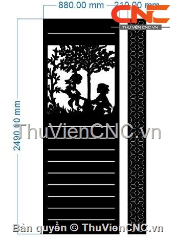 File cnc cổng 4 cánh 2 cô bé bập bênh