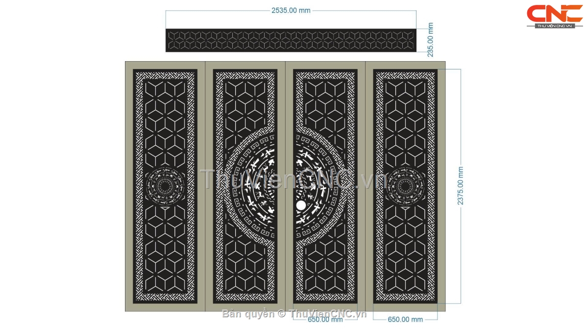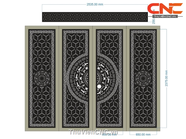 File cnc cổng 4 cánh đặc biệt mẫu họa tiết trống 2 cánh bên