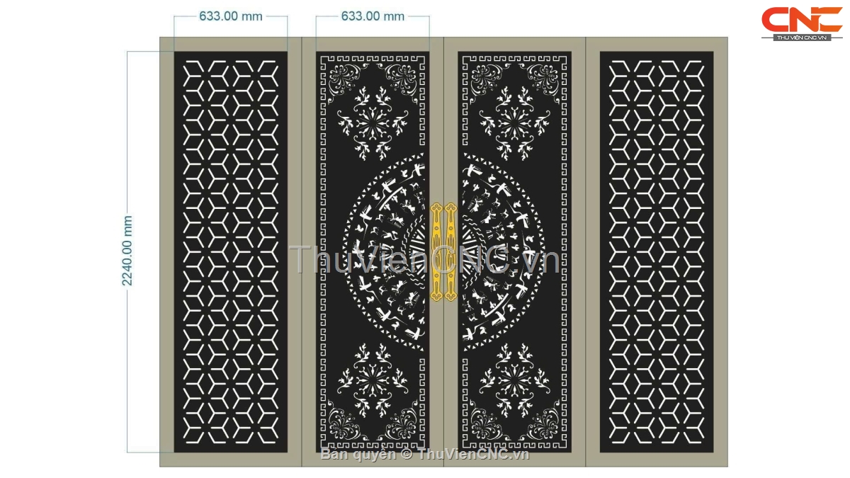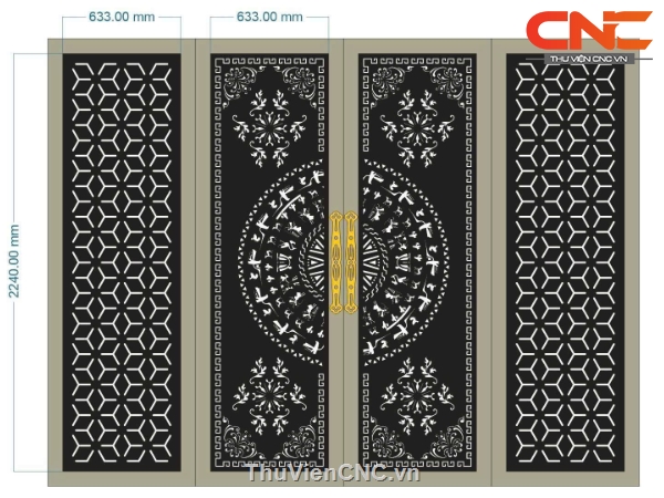 File cnc cổng 4 cánh kèm tay nắm cửa sắt đẹp