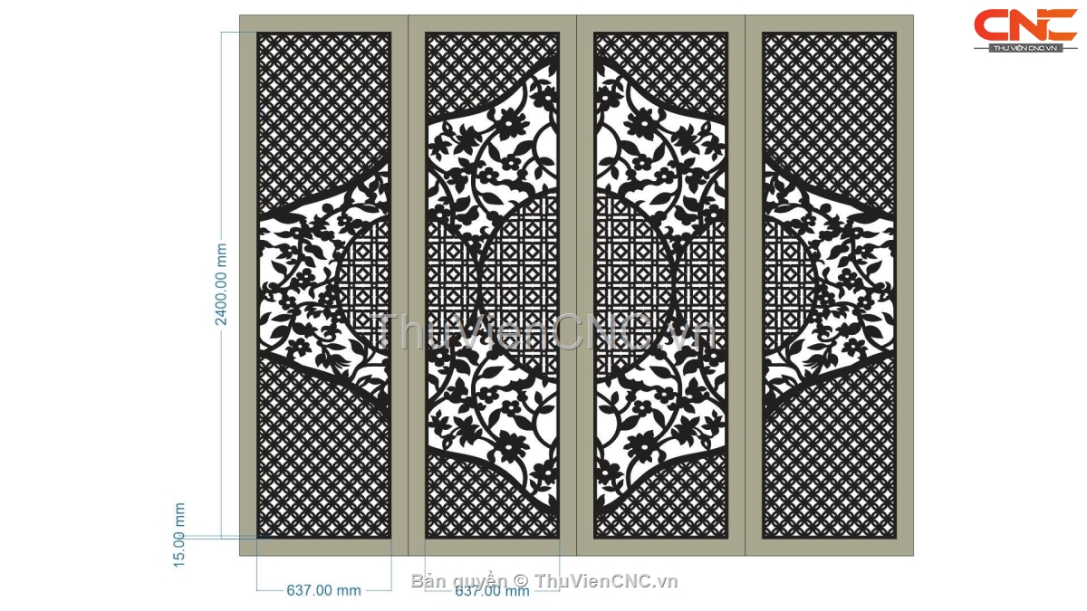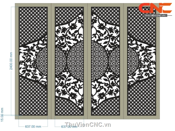 File cnc cổng 4 cánh mẫu họa tiết lá hình tròn