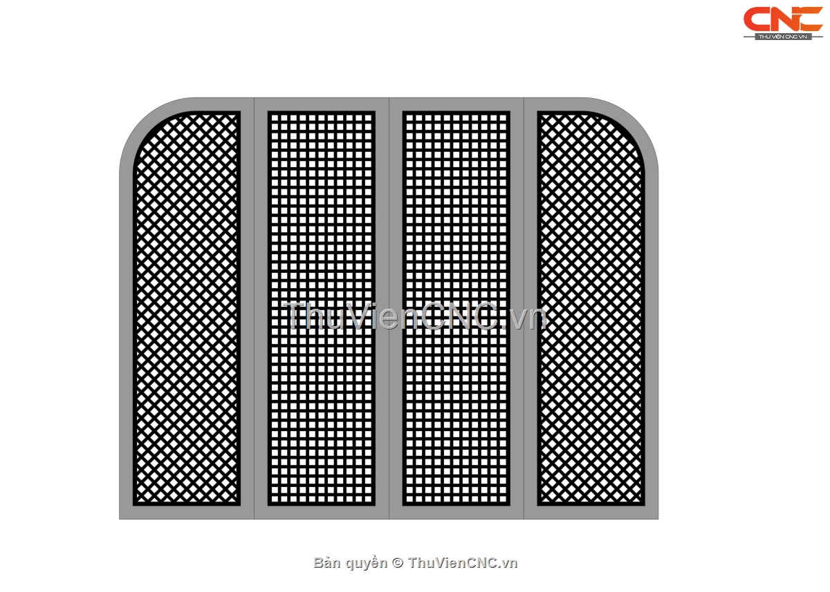 File cnc cổng 4 cánh mẫu họa tiết ô vuông