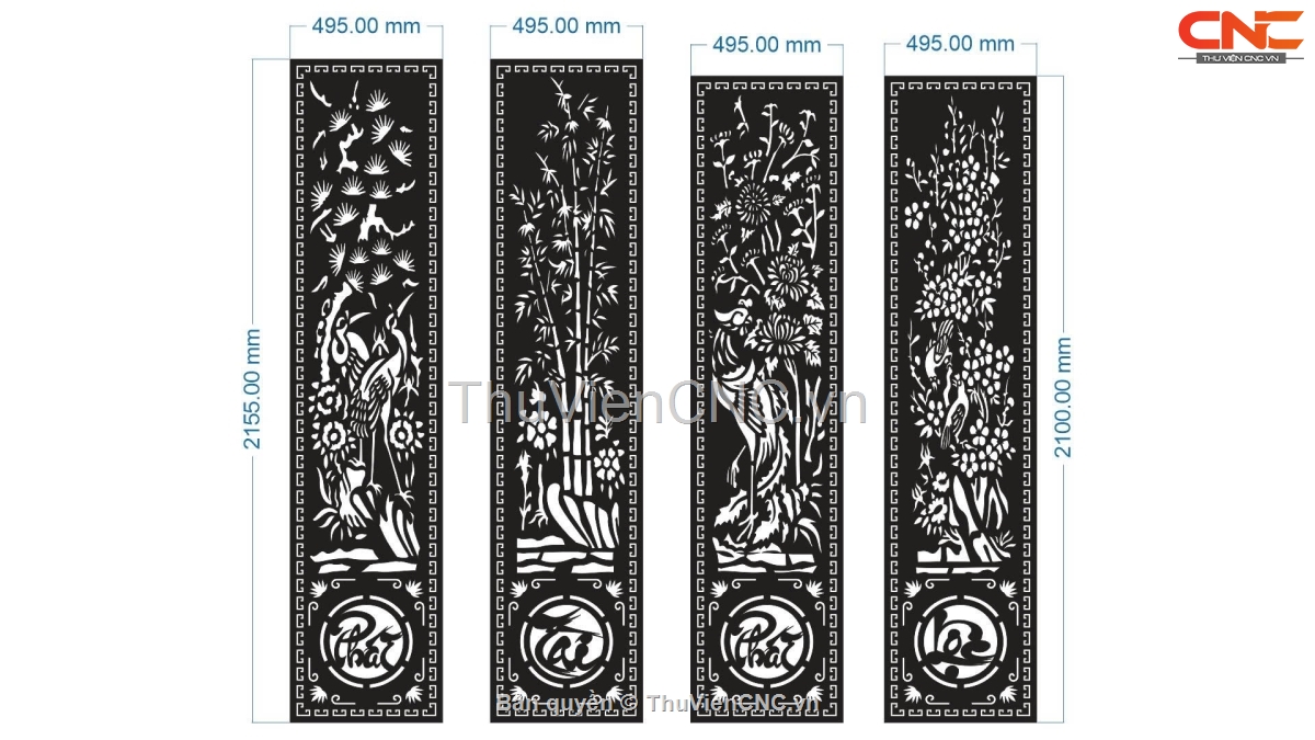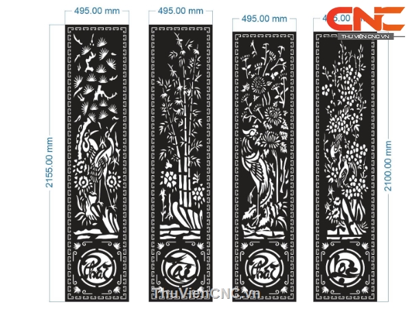 File cnc cổng 4 cánh phát tài phát lộc tùng cúc trúc mai