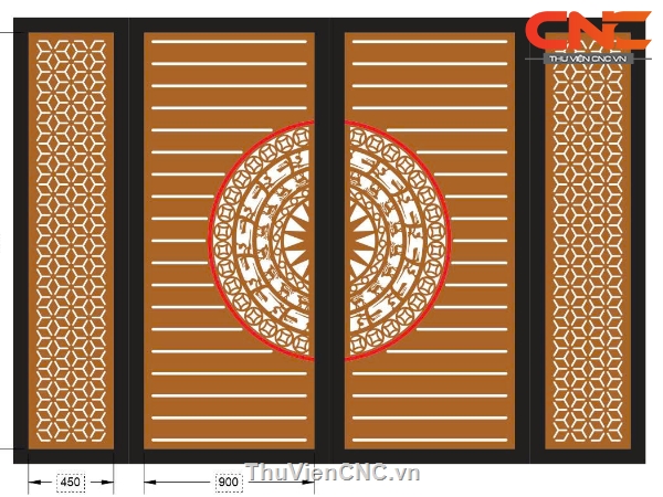 File cnc cổng 4 cánh trống đồng bông tuyết, kèm chỉ trống