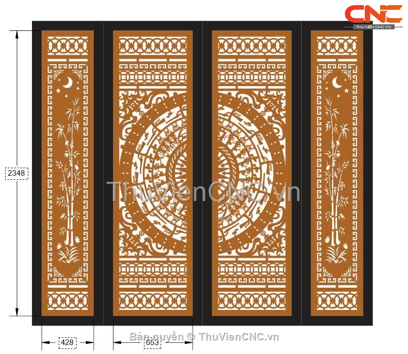 File cnc cổng 4 cánh trống đồng trúc 2 diện tích xây dựng