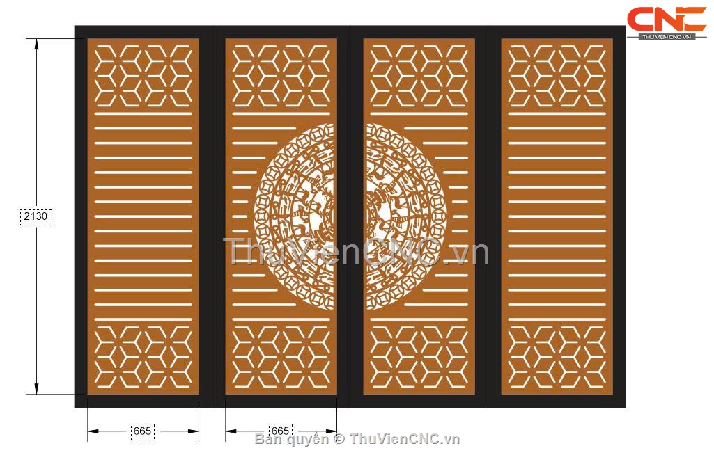 File cnc cổng 4 cánh trống trúc phong cách mắt
