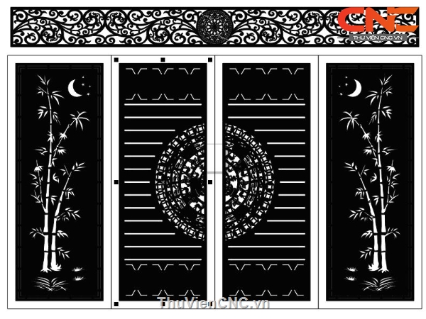 File cnc cổng 4 cánh trúc và trống đồng, kết hợp ô thoáng mới