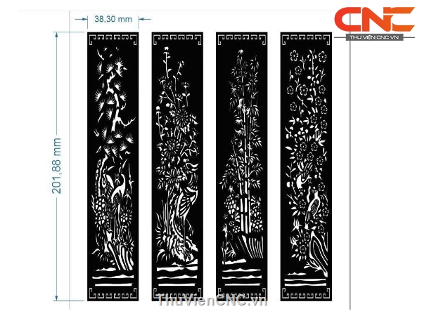 File cnc cổng 4 cánh tứ quý tứ quý đẹp
