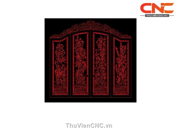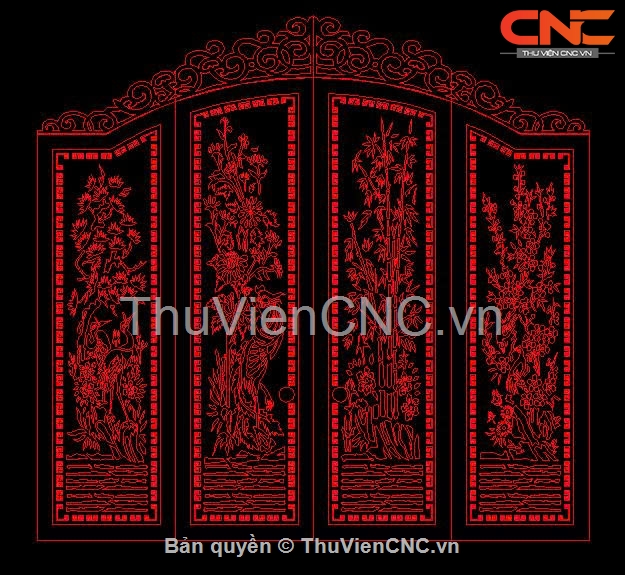 File cnc cổng 4 cánh tùng cúc trúc mai có vòm