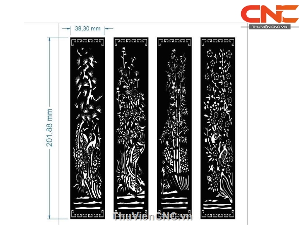 File cnc cổng 4 cánh tùng cúc trúc mai đơn giản