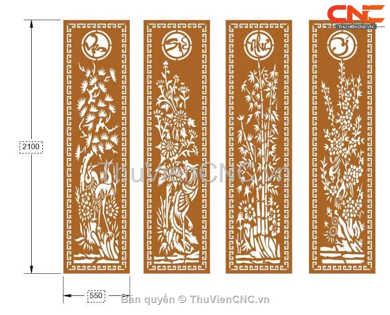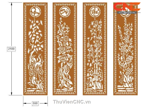 File cnc cổng 4 cánh vạn sự như ý tùng cúc trúc mai