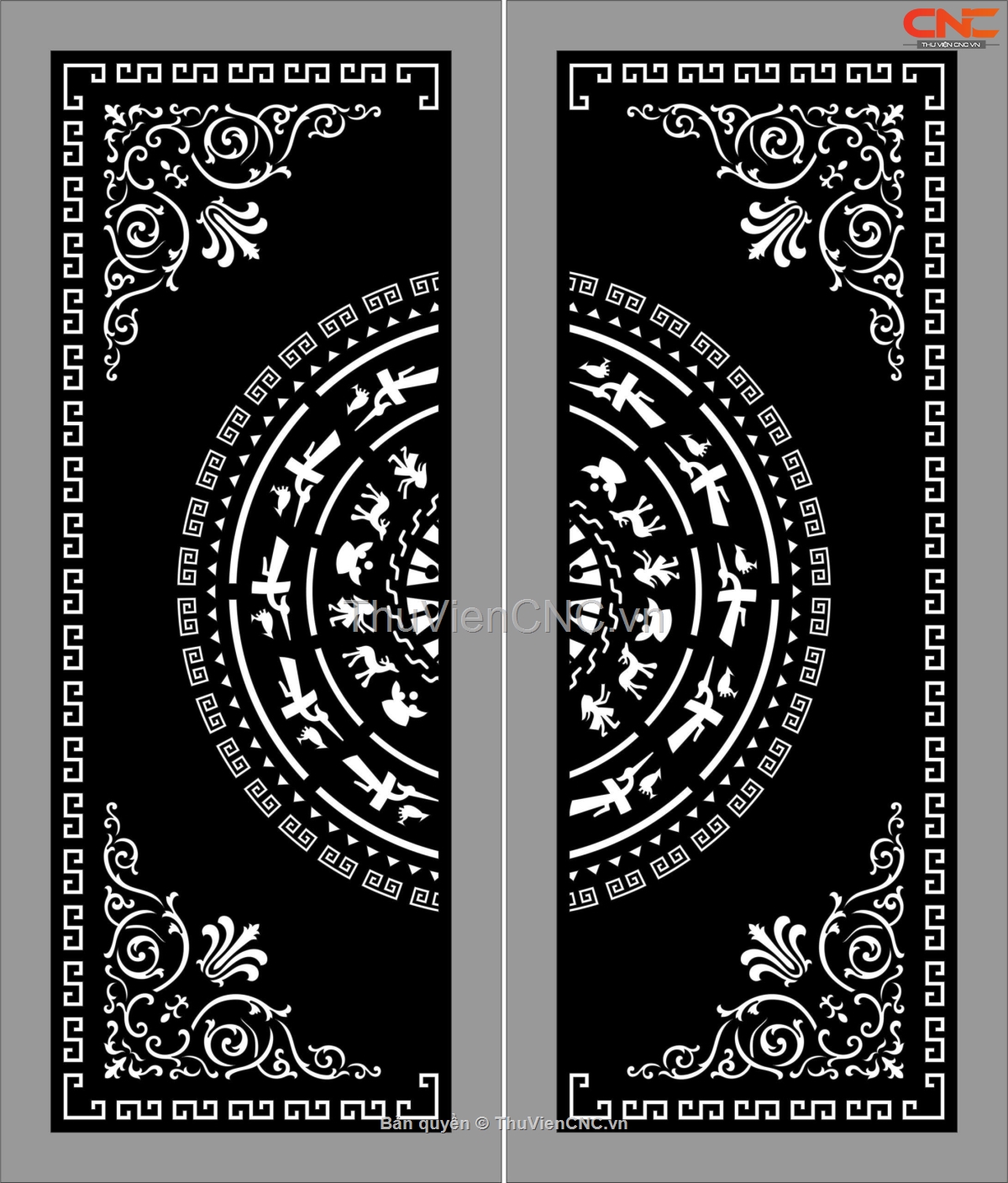 File cnc file cad cổng 2 cánh trống đồng hoa góc mới