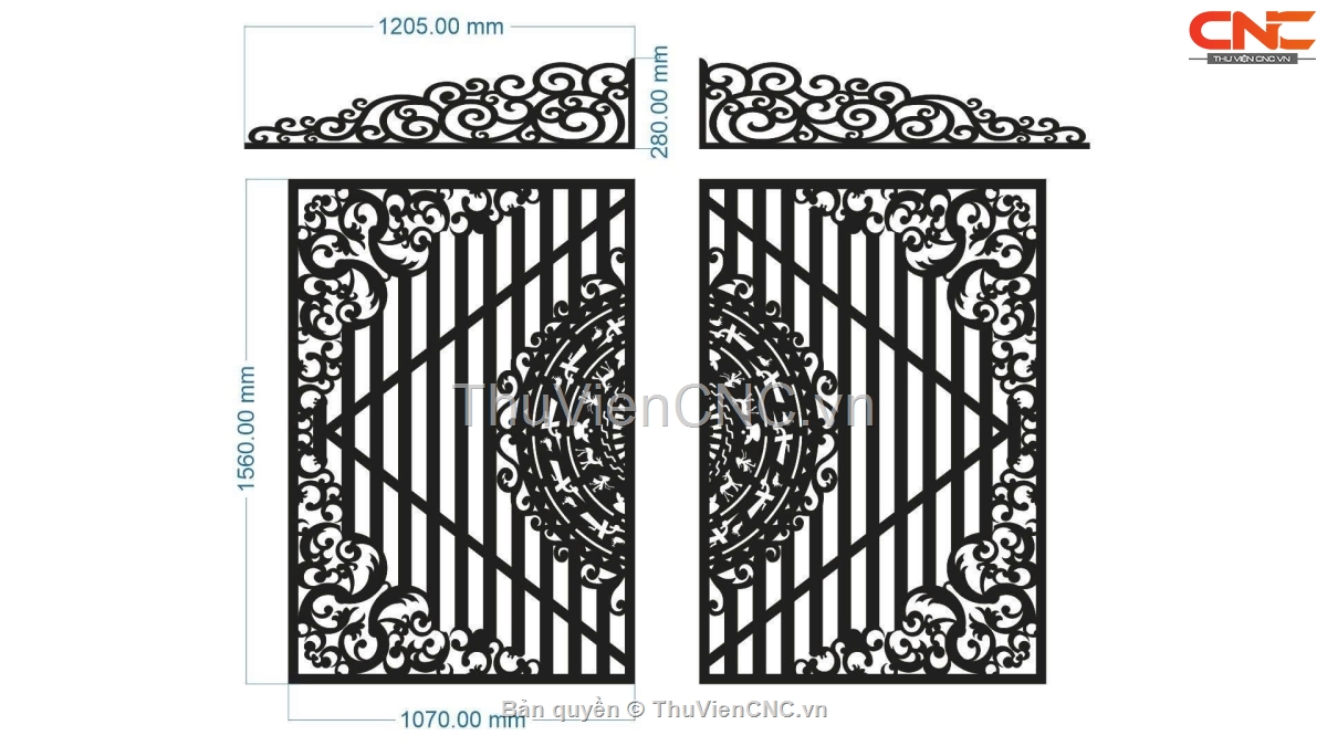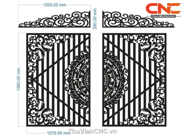 File cnc thiết kế cổng 2 cánh có vòm