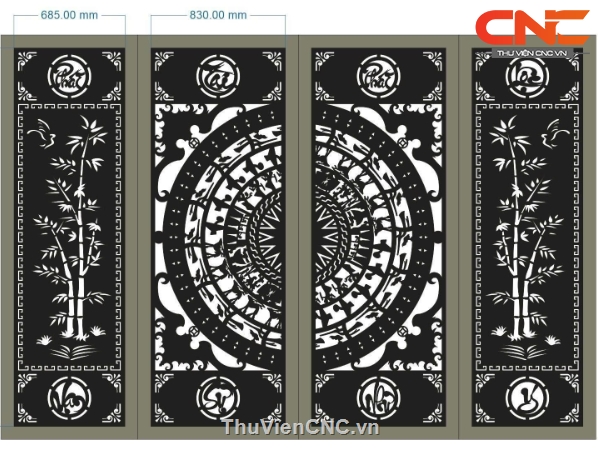 File cnc thiết kế cổng 4 cánh phát tài phát lộc