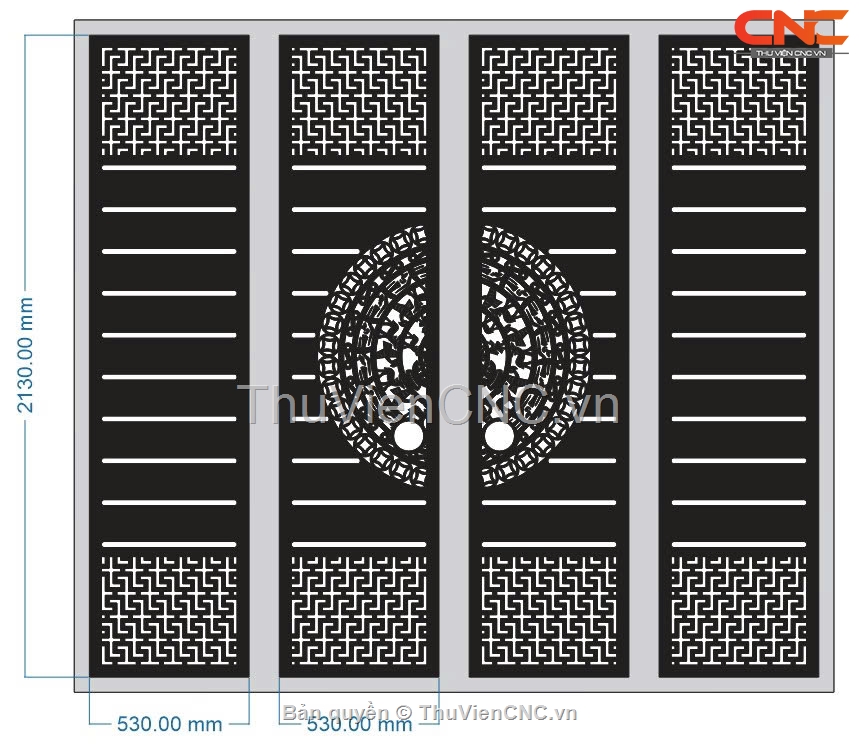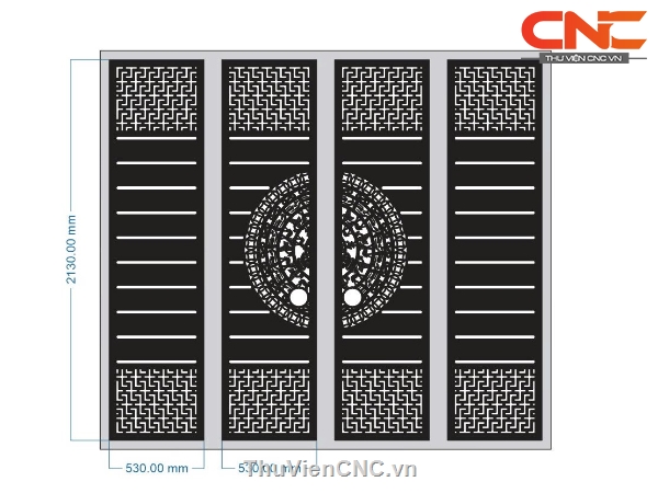 File cnc thiết kế cổng 4 cánh trống đồng có lỗ xỏ tay
