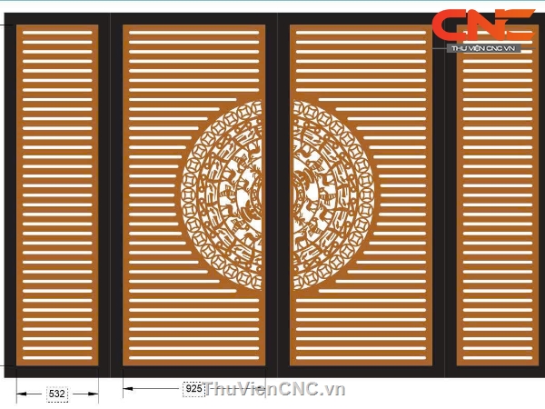 File cnc thiết kế cổng 4 cánh trống đồng đơn giản