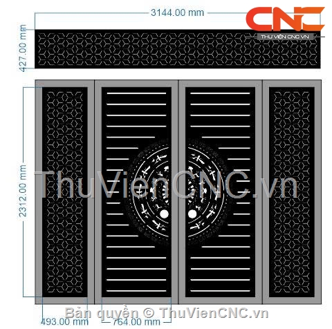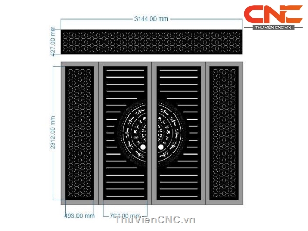 File cnc thiết kế cổng 4 cánh trống đồng mới, có ô thoáng