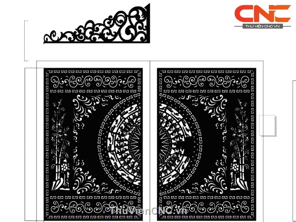 Mình cũng xin phép gửi tới anh em thiết kế cnc cổng 4 cánh trống trúc rất đẹp và đầy đủ đầy đủ này.