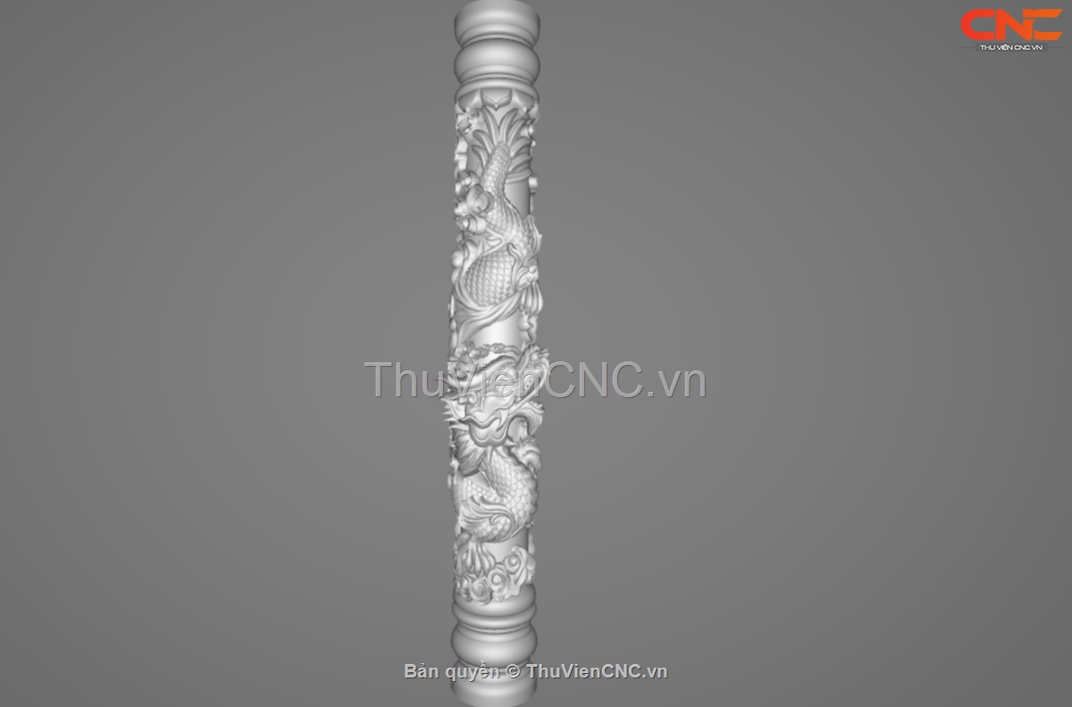 Mẫu file CNC Trụ Rồng Nghệ Thuật, khắc họa hình tượng rồng uốn quanh cột, thân rồng chi tiết vảy, móng, đầu uy nghi. File STL sắc nét, xuất dao sẵn, tương thích ArtCAM, Aspire – phù hợp khắc gỗ, đá,..