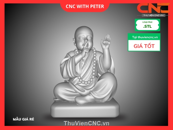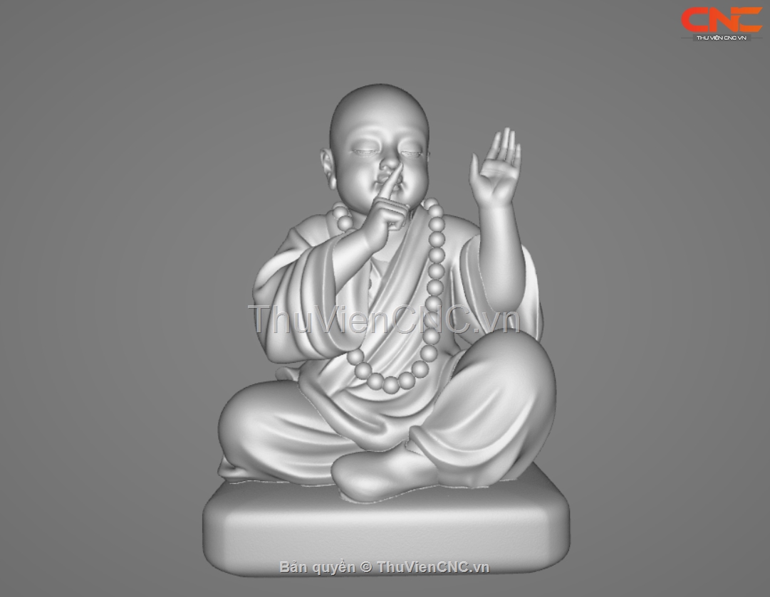 File CNC Tượng Không Nói là hình ảnh một vị tiểu tăng nhẹ nhàng đưa tay che miệng – biểu trưng cho sự kiềm chế, tỉnh thức và tịnh khẩu.