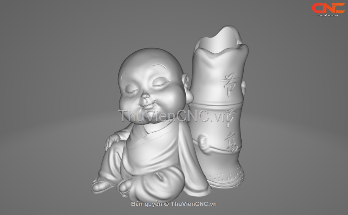 File CNC Tượng Chú Tiểu Ôm Bình Hoa – STL 3D Xuất Dao Sẵn – Mẫu Phật Nhỏ Nghệ Thuậ