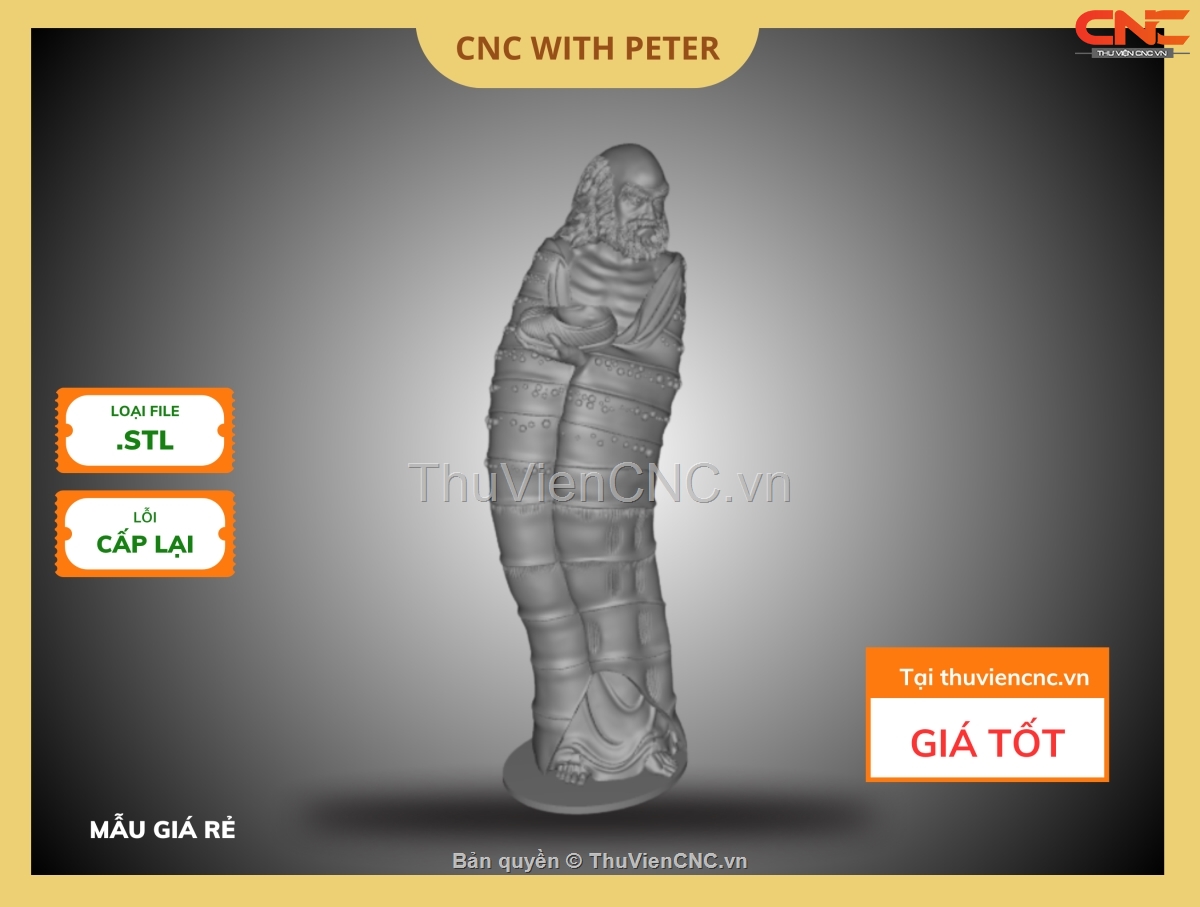 File CNC Tượng Đạt Ma Cuốn Ống Tre là mẫu tượng nghệ thuật – tâm linh, thể hiện thần thái tĩnh tại, uy nghiêm và đầy triết lý. Đường nét tinh xảo, cân đối, thích hợp làm tượng trang trí chùa, am, phòng khách hoặc sưu tập tượng Phật – Đạt Ma.